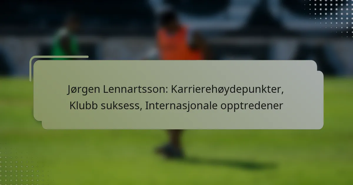 Jørgen Lennartsson er anerkjent for sine innflytelsesrike bidrag innen både klubb- og internasjonal fotball. Hans karrieremål inkluderer betydningsfulle kamper, mange priser og en vellykket trenerkarriere som har formet hans arv innen sporten.