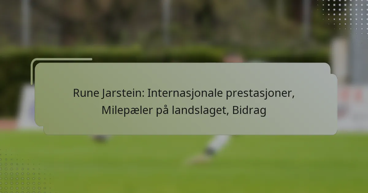 Rune Jarstein har gjort betydelige bidrag til det norske herrelandslaget i fotball, med mange internasjonale caps og deltakelse i store turneringer. Hans prestasjoner har ikke bare vist hans ferdigheter som målvakt, men har også påvirket Norges posisjon i internasjonal fotball.