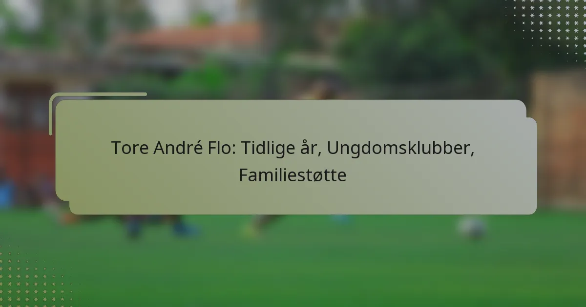 Tore André Flo, født i Stryn, Norge, opplevde en omsorgsfull oppvekst som betydelig påvirket hans lidenskap for fotball. Hans tidlige år var preget av sterk familiestøtte og engasjement i lokale idretter, noe som la grunnlaget for hans fremtidige karriere innen fotball.